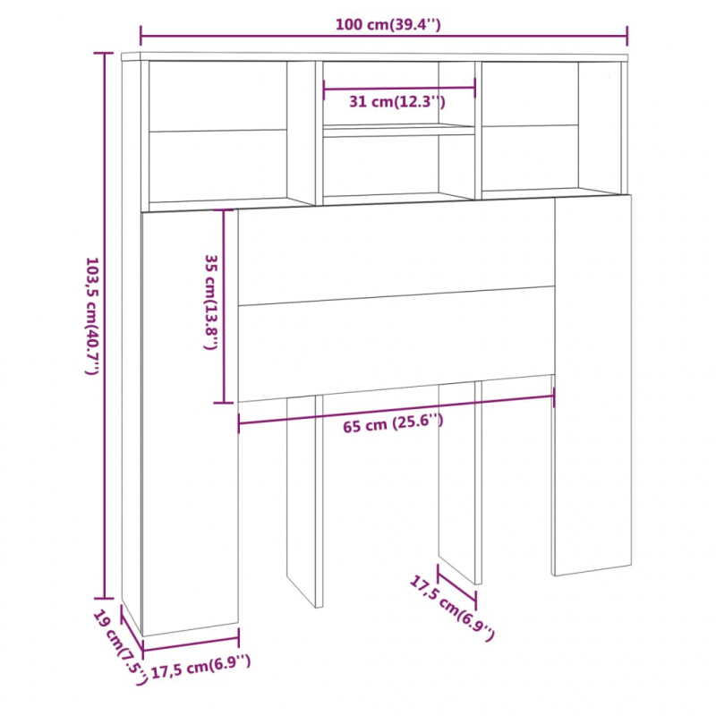 Kopfteil mit Ablagen Braun Eichen-Optik 100x19x103,5 cm