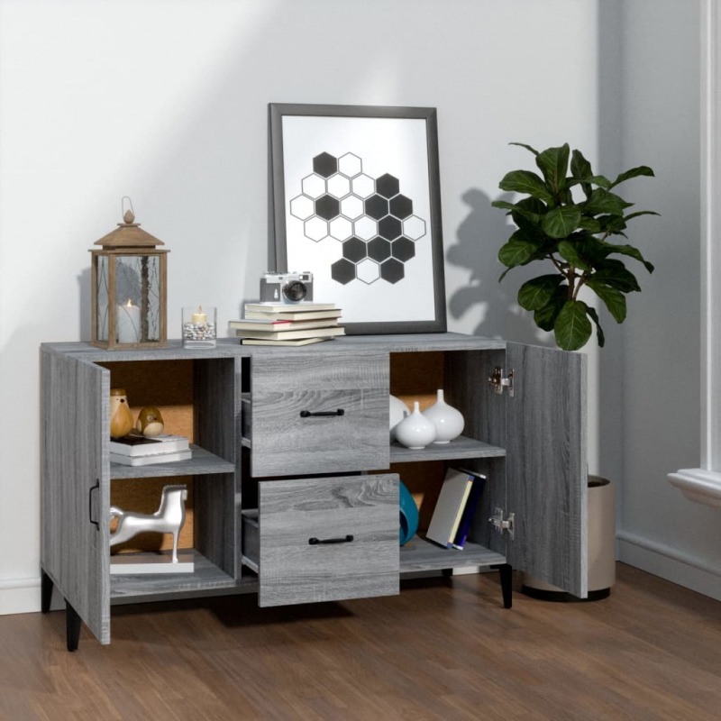 Dieses klassische Sideboard stellt sowohl eine dekorative als auch eine praktische Bereicherung für Ihr Zuhause dar. Premium Material: Holzwerkstoff ist mit seiner glatten Oberfläche ein Material hoher Qualität, das sich durch Festigkeit, Stabilität und Feuchtigkeitsbeständigkeit auszeichnet.Viel Stauraum: Mit 2 Türen und 2 Schubladen versehen, bietet der Beistellschrank reichlich Stauraum, um verschiedene wichtige Alltagssachen ordentlich und griffbereit aufzubewahren. Die Oberplatte des Schranks eignet sich hervorragend, um Dekoartikel zur Schau zu stellen.Einfache Reinigung: Dieser Aufbewahrungsschrank ist mit einem feuchten Tuch leicht zu reinigen.Stilvolles Design: Dieses Sideboard weist ein stilvolles Design auf und bringt dadurch einen Hauch von einzigartigem Charme in Ihre Inneneinrichtung! Achtung:Um ein Umkippen zu verhindern, muss dieses Produkt mit der mitgelieferten Wandhalterung gesichert werden.
