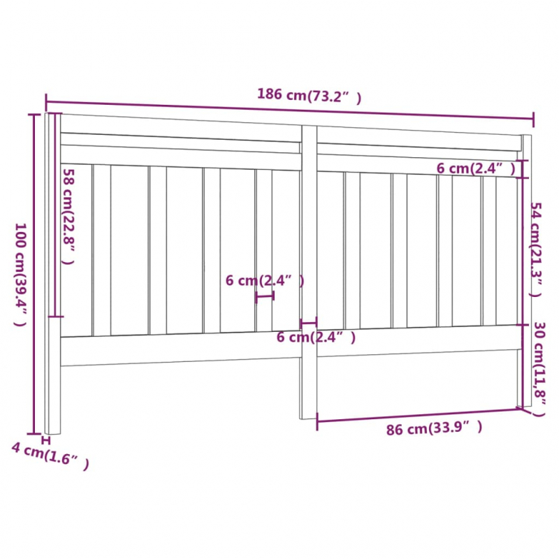 Kopfteil Schwarz 186x4x100 cm Massivholz Kiefer