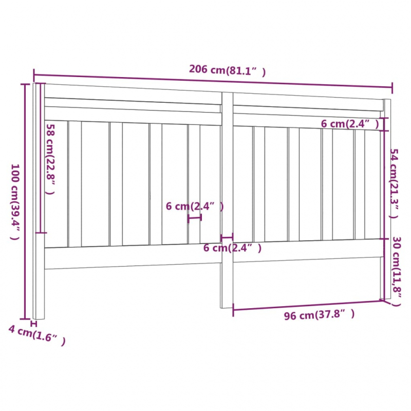 Kopfteil Schwarz 206x4x100 cm Massivholz Kiefer