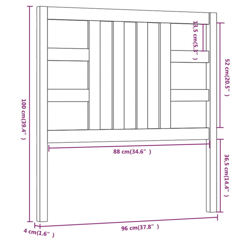 Kopfteil Schwarz 96x4x100 cm Massivholz Kiefer