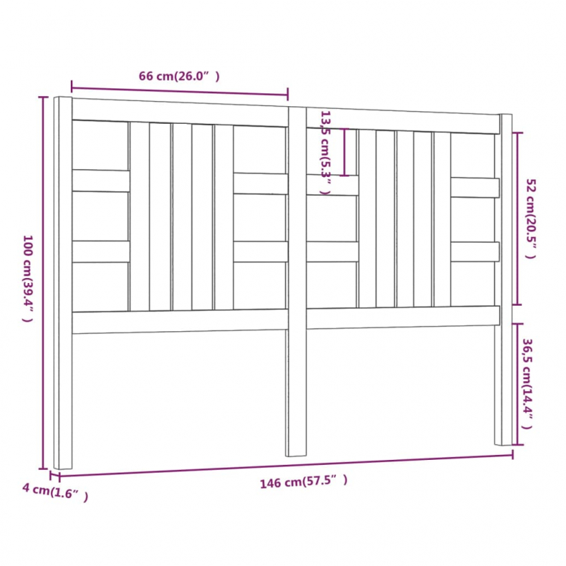 Kopfteil Grau 146x4x100 cm Massivholz Kiefer