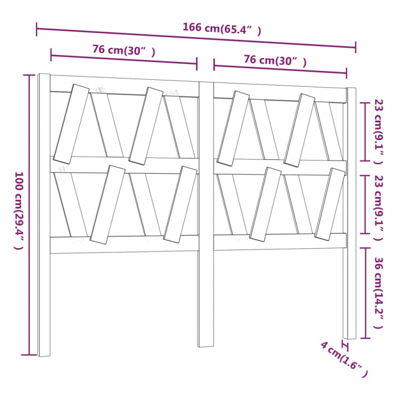 Kopfteil Schwarz 166x4x100 cm Massivholz Kiefer