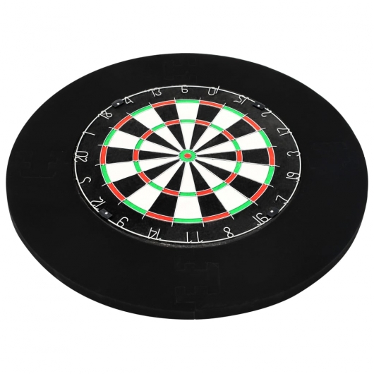 Genießen Sie Ihre Dartspiele mit unserem qualitativ hochwertigen Darts-Set! Das Set umfasst 1 Dartscheibe, 6 Dartpfeile mit Stahlspitzen und 1 Dartboard-Auffangring. Die Dartscheibe besteht aus qualitativ hochwertigem Sisal und ist mit Spezialdrähten versehen, um Bounce-Outs zu reduzieren und Ihre Trefferquote zu verbessern. Mit dem mitgelieferten Zubehör lässt sich das Dartboard ganz einfach montieren. Das Sisal-Dartboard passt perfekt zu den mitgelieferten Pfeilen mit gehärteten Stahlspitzen. Zudem verfügen die Pfeile über rutschfeste Barrels, die für einen guten Griff sorgen und zu einer gut ausgewogenen Steuerfeder beitragen. Das mitgelieferte Surround schützt die Wand vor Darts, die das Board verfehlen, und die Darts selbst vor Beschädigung. Da es aus Material hoher Dichte besteht, ist es besonders langlebig. Das Surround passt eng um die Dartscheibe und besteht aus 2 Teilen, die leicht zerlegt und aufbewahrt werden können.