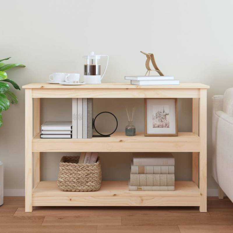 Verleihe deinem Zimmer mit diesem klassischen Konsolentisch aus Holz einen schönen Touch! Er ist eine praktische und dekorative Ergänzung für dein Zuhause. Massives Kiefernholz: Massives Kiefernholz ist ein wunderschönes Naturmaterial. Kiefernholz weist eine gerade Maserung auf und die Aststellen verleihen dem Material seine charakteristische, rustikale Optik.Viel Stauraum: Der Flurtisch verfügt über 3 Ablagen und bietet daher reichlich Stauraum, um verschiedene Alltagssachen ordentlich und griffbereit aufzubewahren.Vielseitig einsetzbar: Dieser Beistelltisch lässt sich überall in deinem Zuhause einsetzen. Er kann als Eingangstisch, Couchtisch, Akzenttisch, TV-Tisch usw. dienen. Achtung:Um das Umkippen zu verhindern, muss dieses Produkt mit der mitgelieferten Wandhalterung gesichert werden. Hinweis:Jedes Produkt wird mit einer Montageanleitung in der Verpackung für eine einfache Montage geliefert.