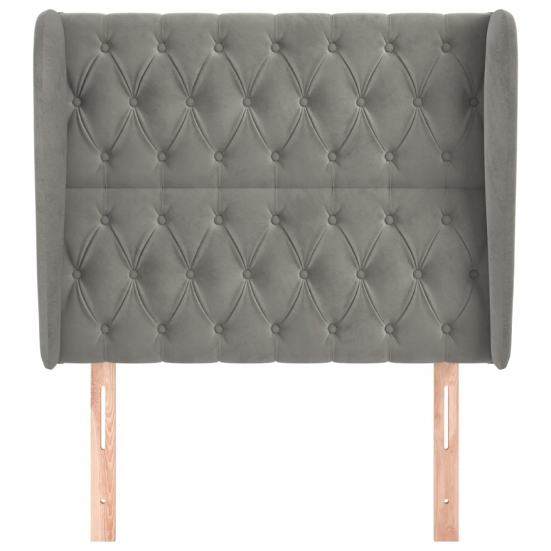 Kopfteil mit Ohren Hellgrau 93x23x118/128 cm Samt