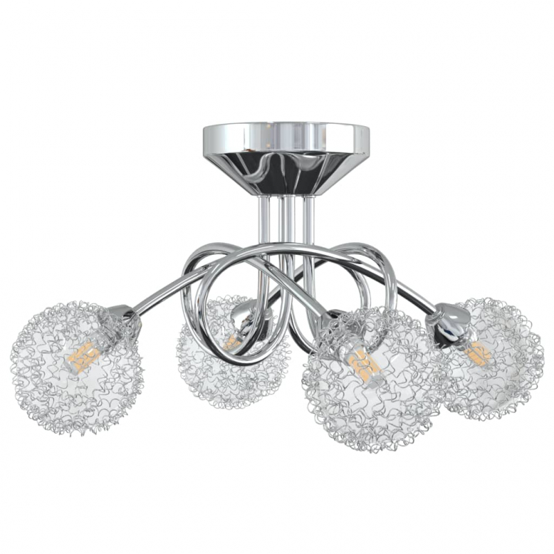 Diese einzigartige Deckenleuchte mit 4 Glasschirmen, die mit einem Drahtgeflecht aus Aluminium umwickelt sind, besticht durch ihr modernes Design und verleiht deinem Raum einen atemberaubenden Look. Verchromtes Material: Der gesamte Stahlsockel und die 4 verschlungenen Stahlrohre sind verchromt, sodass die Deckenleuchte auf eine lange Lebensdauer ausgelegt ist. Zudem sparst du so Zeit und Geld beim Wechseln der Lampe.G9-Fassung: Die elegante Deckenlampe ist mit 4 G9-Fassungen ausgestattet, wobei die maximale Wattzahl jeder Birne 40 Watt nicht überschreiten darf.LED-Leuchte: Durch die energiesparende LED-Technologie werden der Energieverbrauch und die Stromkosten verringert.Schöne Lampenschirme: Durch die filigranen Glasschirme durchscheint wunderbares Licht, das jeden Winkel des Raumes beleuchtet. Das Drahtgeflecht aus Aluminium lässt das Licht noch heller leuchten. Hinweis:Jedes Produkt wird mit einer Montageanleitung in der Verpackung für eine einfache Montage geliefert.