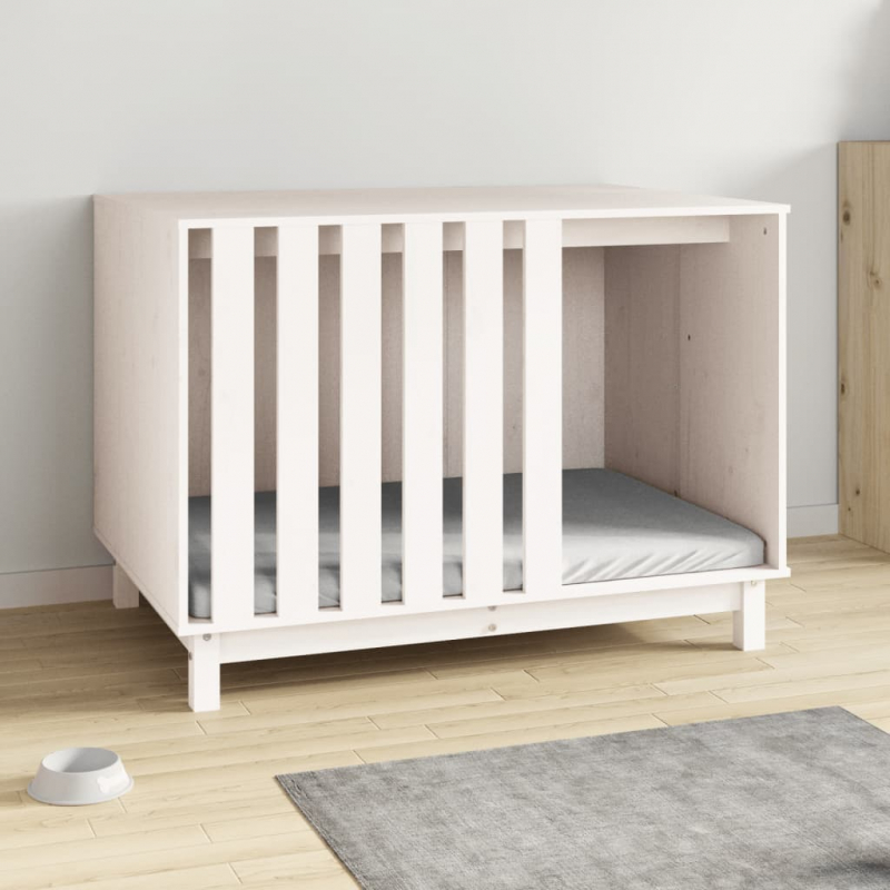Hundehütte Weiß 100x70x72 cm Massivholz Kiefer