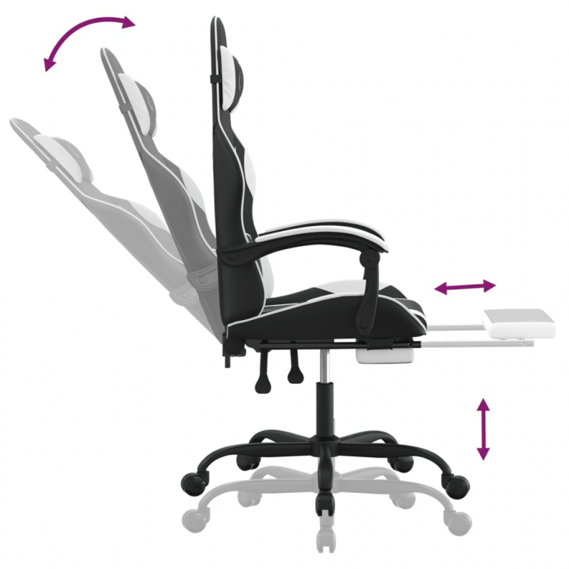 Gaming-Stuhl mit Fußstütze Schwarz und Weiß Kunstleder