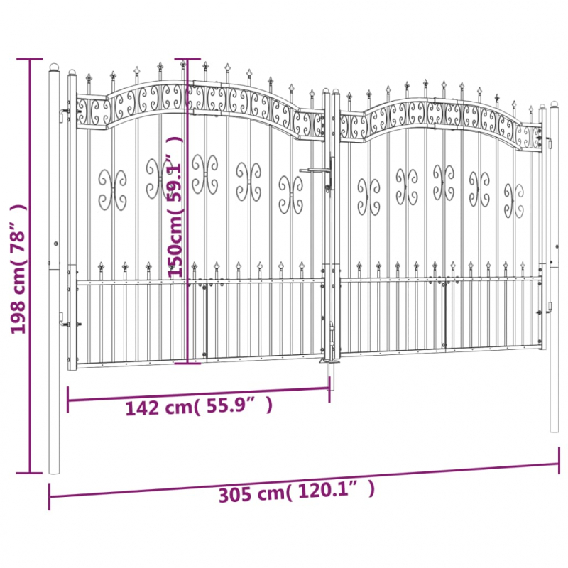 Zauntor mit Speerspitzen Schwarz 305x198 cm Stahl