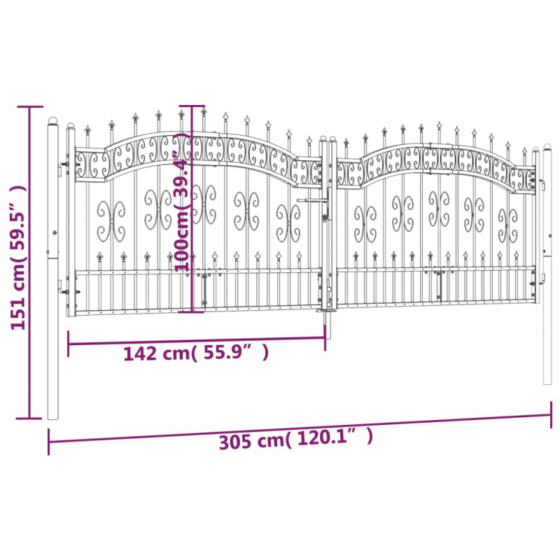 Zauntor mit Speerspitzen Schwarz 305x151 cm Stahl