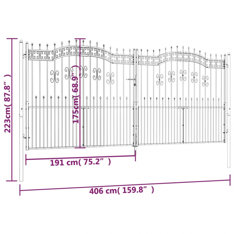 Zauntor mit Speerspitzen Schwarz 406x223 cm Stahl