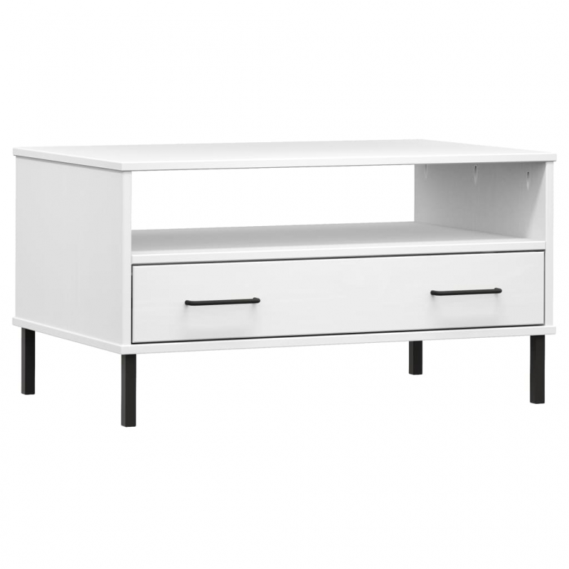 Couchtisch OSLO mit Metallbeinen Weiß 85x50x45 cm Massivholz
