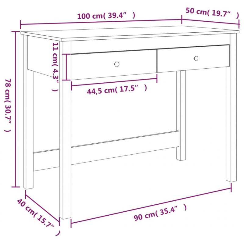 Verleihe deinem Büro oder Arbeitszimmer einen Hauch von elegantem Charme mit diesem Schreibtisch aus Holz! Massives Kiefernholz: Massives Kiefernholz ist ein wunderschönes Naturmaterial. Kiefernholz weist eine gerade Maserung auf und die Aststellen verleihen dem Material seine charakteristische, rustikale Optik. Stabiler Rahmen: Dank der Holzkonstruktion ist der PC-Tisch robust und auf eine lange Lebensdauer ausgelegt. Reichlich Stauraum: Mit seinen 2 Schubladen bietet dieser Bürotisch reichlich Platz, um deine wichtigsten Sachen griffbereit und gut organisiert aufzubewahren. Achtung:Um das Umkippen zu verhindern, muss dieses Produkt mit der mitgelieferten Wandhalterung gesichert werden.Hinweis:Jedes Produkt wird mit einer Montageanleitung in der Verpackung für einen einfachen Zusammenbau geliefert.
