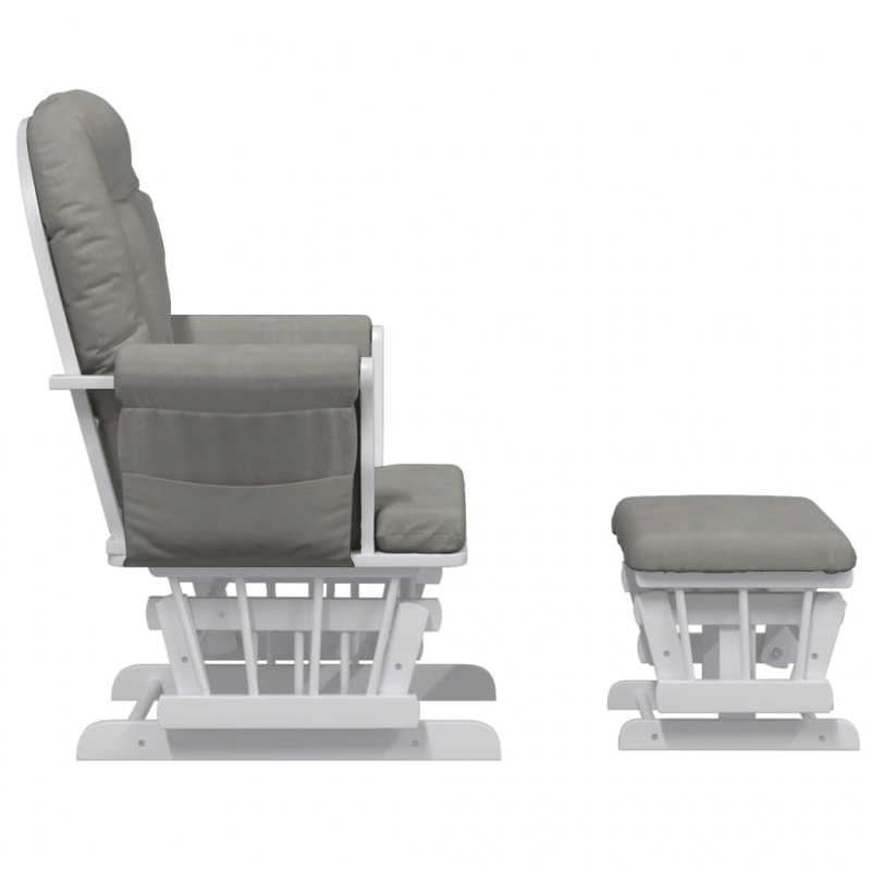 Entspanne dich und genieße deine Freizeit auf diesem stylischen Schaukelsessel mit Hocker! Gleitfunktion: Der Relaxsessel und der mitgelieferte Fußhocker lassen sich hin und her bewegen und eignen sich somit ideal zum Füttern und Beruhigen deines Babys. Breite Anwendung: Dieser Schaukelstuhl lässt sich überall im Haus einsetzen, sei es im Kinderzimmer, um dich um dein Baby zu kümmern, oder im Wohn- bzw. Schlafzimmer zum Entspannen.Langlebiges Material: Massives Kautschukholz ist ein wunderschönes Naturmaterial. Kautschukholz besitzt eine dichte Maserung und ist stoßfest und langlebig. Stoff weist eine schlichte und saubere Optik auf und ist auch atmungsaktiv und langlebig.Bequemes Sitzerlebnis: Der Schaukelsessel ist mit dicken Kissen und gepolsterten Armlehnen versehen, um höchsten Komfort zu bieten.Praktisches Design: Dieser gleitende Schaukelstuhl verfügt über Seitentaschen, in denen du kleine Gegenstände in Reichweite aufbewahren kannst. Gut zu wissen:Um die Montage so einfach wie möglich zu machen, wird jedes Produkt mit einer Anleitung geliefert.