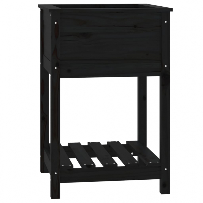 Pflanzkübel mit Ablage Schwarz 54x54x81 cm Massivholz Kiefer