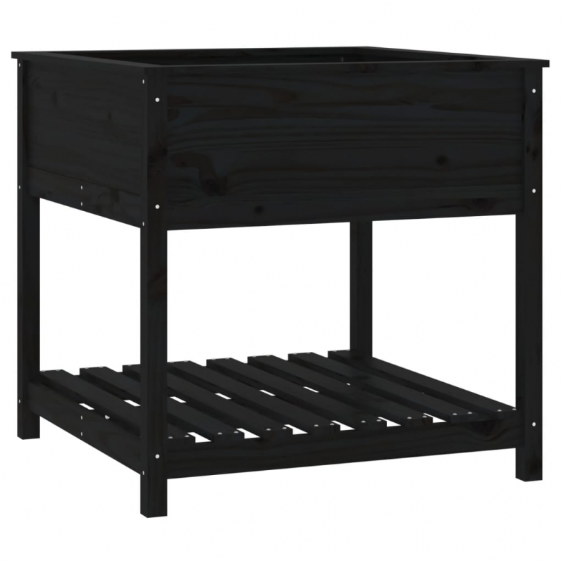 Pflanzkübel mit Ablage Schwarz 82,5x82,5x81cm Massivholz Kiefer