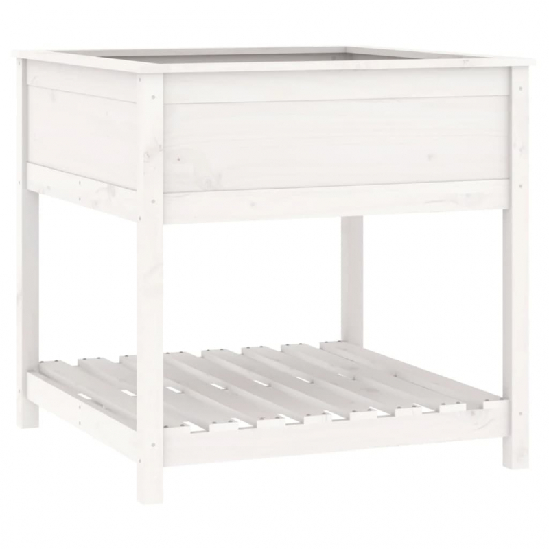 Pflanzkübel mit Ablage Weiß 82,5x82,5x81 cm Massivholz Kiefer