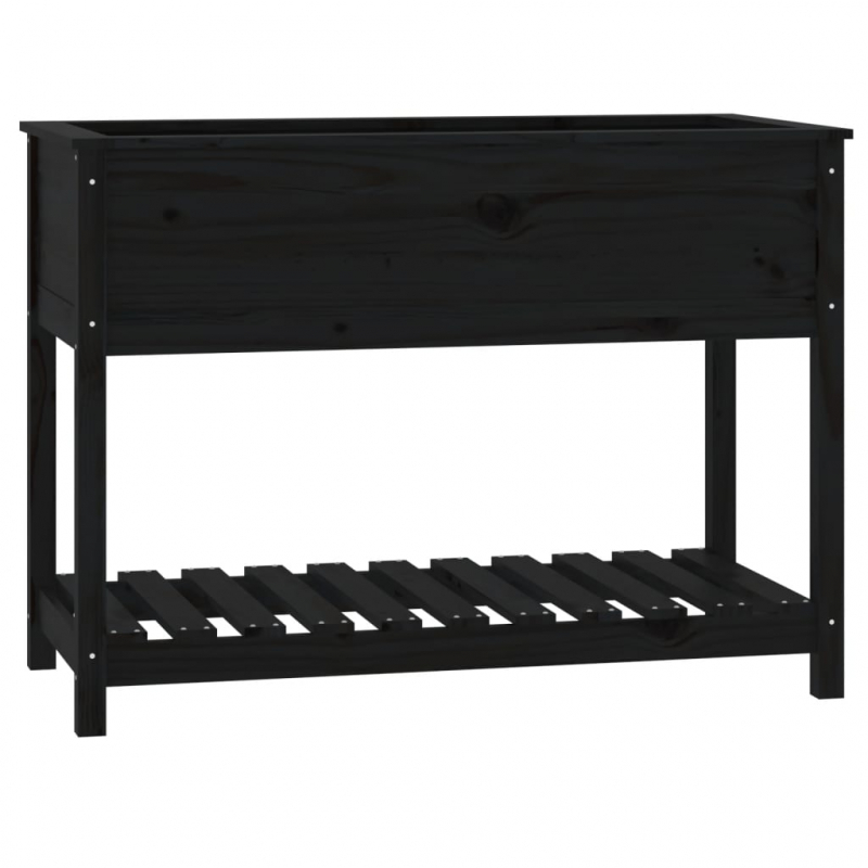 Pflanzkübel mit Ablage Schwarz 111,5x54x81 cm Massivholz Kiefer