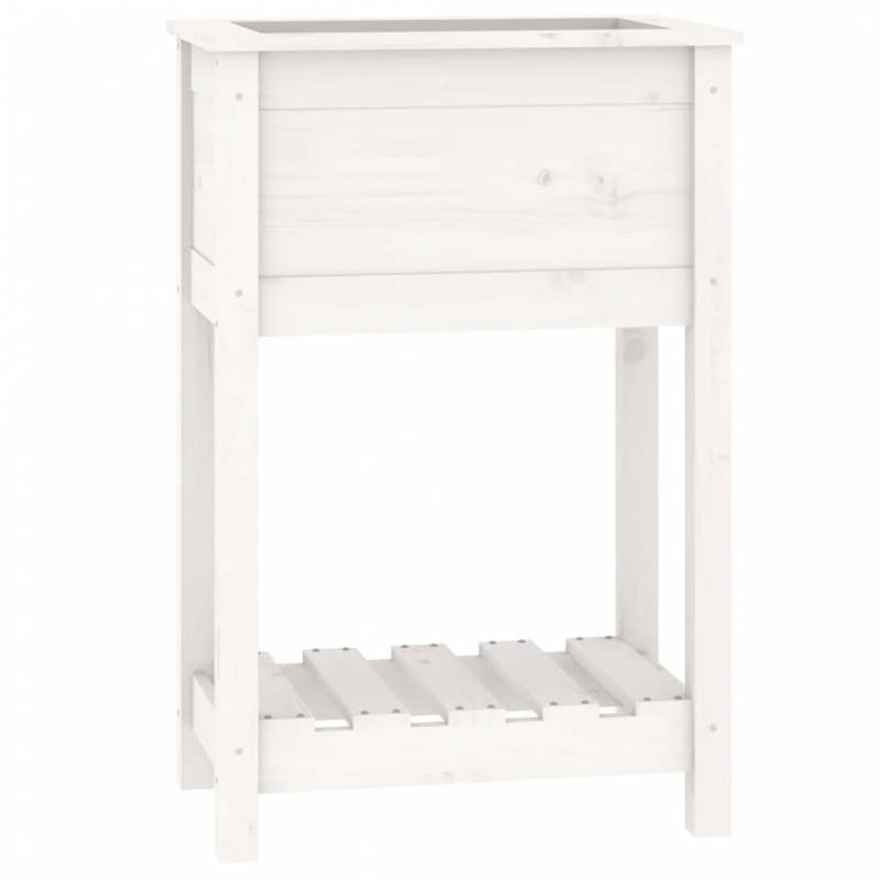 Pflanzkübel mit Ablage Weiß 54x34,5x81 cm Massivholz Kiefer