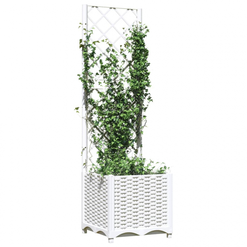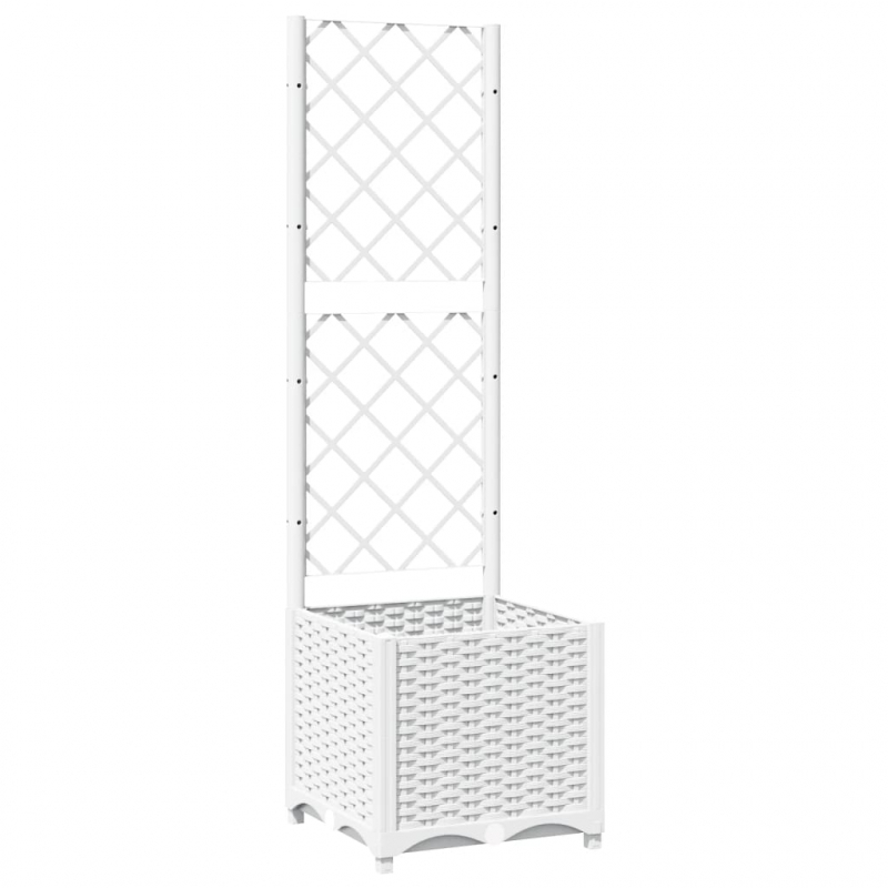 Pflanzkübel mit Rankgitter Weiß 40x40x136 cm PP