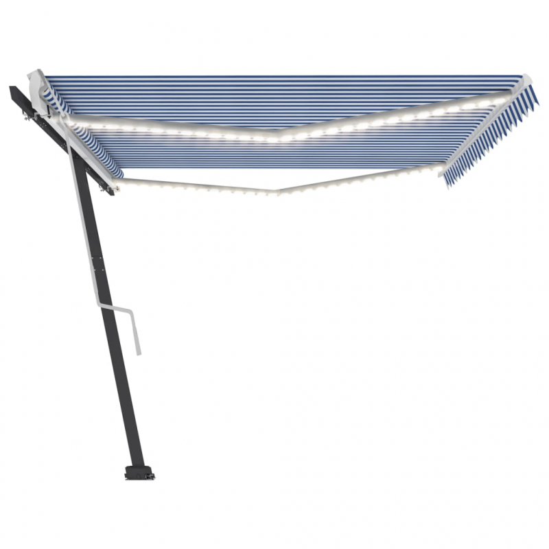 Schaffe einen angenehmen und kühlen Platz in deinem Außenbereich mit dieser einziehbaren Markise! Mit einem rostfreien, pulverbeschichteten Aluminiumrahmen ausgestattet, ist diese Outdoor-Markise leicht und dennoch robust. Der Markisenstoff besteht aus hochdichtem Polyester mit PU-Beschichtung, das UV-beständig und wasserfest ist. Der Winkel und die Höhe der Markise lassen sich an deine Bedürfnisse anpassen. Du kannst diesen Sonnenschutz mittels der langen Kurbel leicht ein- und ausfahren. Darüber hinaus sorgen die solarbetriebenen LED-Leuchten im Dunkel für eine energiesparende Beleuchtung. Der Standfuß kann um 360 Grad gedreht werden und bietet dadurch höchste Flexibilität.