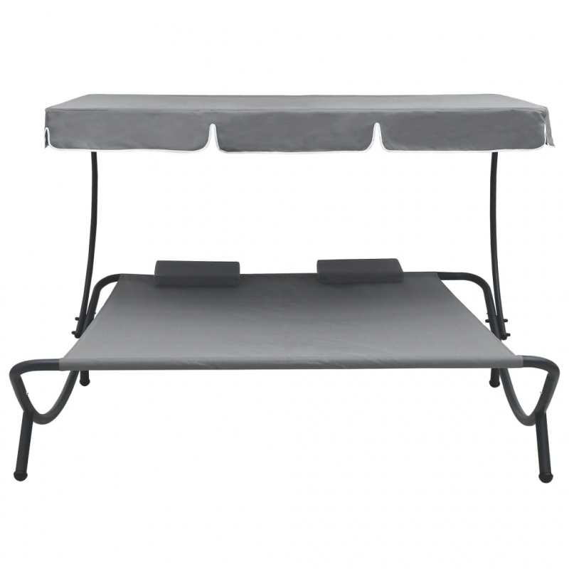 Mit ihren 2 Kissen und dem großen Dach ist diese Sonnenliege für 2 Personen überall ein echter Hingucker. Sie ist die perfekte Wahl zum Entspannen, oder um Spaß mit der Familie im Garten, Hinterhof, auf der Terrasse oder am Strand zu haben. Aus witterungsbeständigem Oxford-Gewebe gefertigt, lässt sich die Gartenliege das ganze Jahr über im Freien einsetzen. Das pulverbeschichtete Stahlgestell sorgt für eine hohe Stabilität und garantiert ausgezeichnete Haltbarkeit. Aus wasserabweisendem Polyester gefertigt, bieten die Kissen und das Sonnendach höchsten Liegekomfort. Zudem spendet das großzügige Sonnendach angenehmen Schatten. Die Sonnenliege lässt sich einfach zusammenbauen. Hinweis: Um die Lebensdauer deiner Gartenmöbel zu verlängern, empfehlen wir dir, sie mit einer wasserdichten Abdeckung zu schützen.