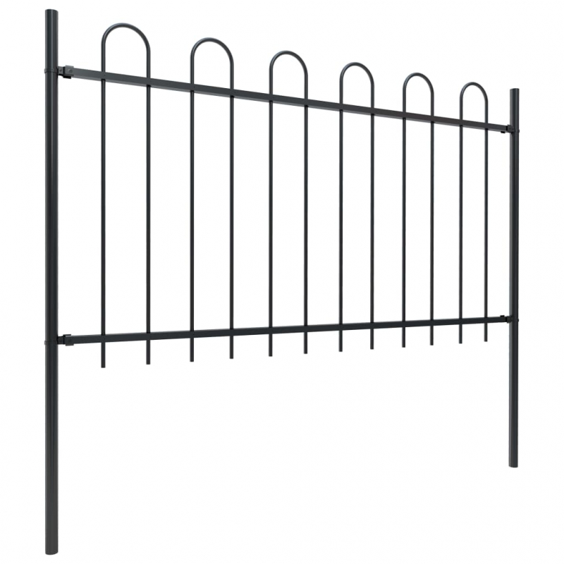 Bilden Sie einen eleganten Zaun rund um Ihren Garten, Ihr Zuhause oder Ihren Eingang! Dieser dekorative Gartenzaun aus Stahl besteht aus 4 Zaunelementen und 5 Pfosten und ist insgesamt 6,8 Meter lang. Er bietet Ihnen eine stabile, sichere und pflegeleichte Abgrenzung für Ihr Privat- oder Geschäftsgrundstück. Die vertikalen Stangen in Bügel-Design mit horizontaler Stütze für zusätzliche Stabilität bieten Ihnen ein hohes Maß an Sicherheit. Hergestellt aus robustem, pulverbeschichtetem Stahl, ist der Zaun sehr stabil, robust und langlebig. Dank des mitgelieferten Montagezubehörs lässt sich der Zaun auch ganz einfach montieren. Hinweis: Sie können mehrere Zaun-Sets kaufen, um den Zaun nach Belieben zu verlängern.