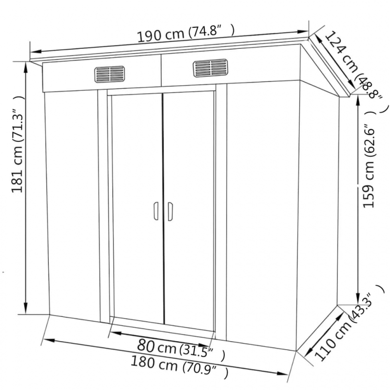 Dieser Gartenschuppen ist perfekt für die Lagerung einer Vielzahl von Werkzeugen und Geräten. Dieser Gartenschuppen hat 2 Entlüftungsöffnungen an der Vorderseite, die für eine hervorragende Luftzirkulation sorgen. Die doppelten Schiebetüren an der Vorderseite erlauben ein bequemes Ein- und Austreten aus dem Häuschen. Dank der verzinkten Stahlkonstruktion mit zusätzlicher Zinkbeschichtung ist der Geräteschuppen langlebig, stabil und robust, so dass Rost und extreme Witterungsbedingungen ihm nichts anhaben können. Die fertig zugeschnittenen, vorgebohrten Teile und die mitgelieferte Aufbauanleitung garantieren eine einfache und schnelle Montage.