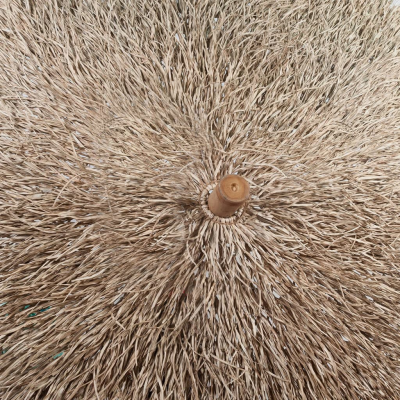 Dieser hochwertige Sonnenschirm mit Bananenblättern ist perfekt, um schädliche UV-Strahlen abzufangen und dich im Garten, auf der Terrasse oder im Innenhof vor der Sonne zu schützen. Der Schirm kann auch für Ausstellungen, Bars oder Restaurants verwendet werden. Der Schirm kann zum einfachen Transport und zur Lagerung gefaltet werden. Dank des starken Bambus-Rahmens ist der Strandschirm stabil und langlebig. Gut zu wissen: Das obere Teil der Bananenblättern ist handgeflochten, sodass es das Sonnenlicht möglicherweise nicht vollständig abschirmt.