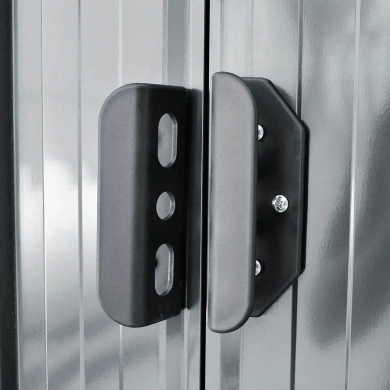 Dieser Gartenschuppen ist perfekt für die Lagerung einer Vielzahl von Werkzeugen und Geräten. Dieser Gartenschuppen hat 2 Entlüftungsöffnungen an der Vorderseite, die für eine hervorragende Luftzirkulation sorgen. Die doppelten Schiebetüren an der Vorderseite erlauben ein bequemes Ein- und Austreten aus dem Häuschen. Dank der verzinkten Stahlkonstruktion mit zusätzlicher Zinkbeschichtung ist der Geräteschuppen langlebig, stabil und robust, so dass Rost und extreme Witterungsbedingungen ihm nichts anhaben können. Die fertig zugeschnittenen, vorgebohrten Teile und die mitgelieferte Aufbauanleitung garantieren eine einfache und schnelle Montage.