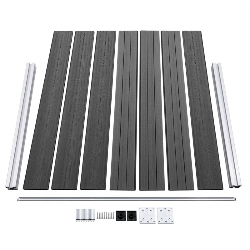 • Material: WPC (Holz-Kunststoff-Verbundwerkstoff), Aluminium, Stahl