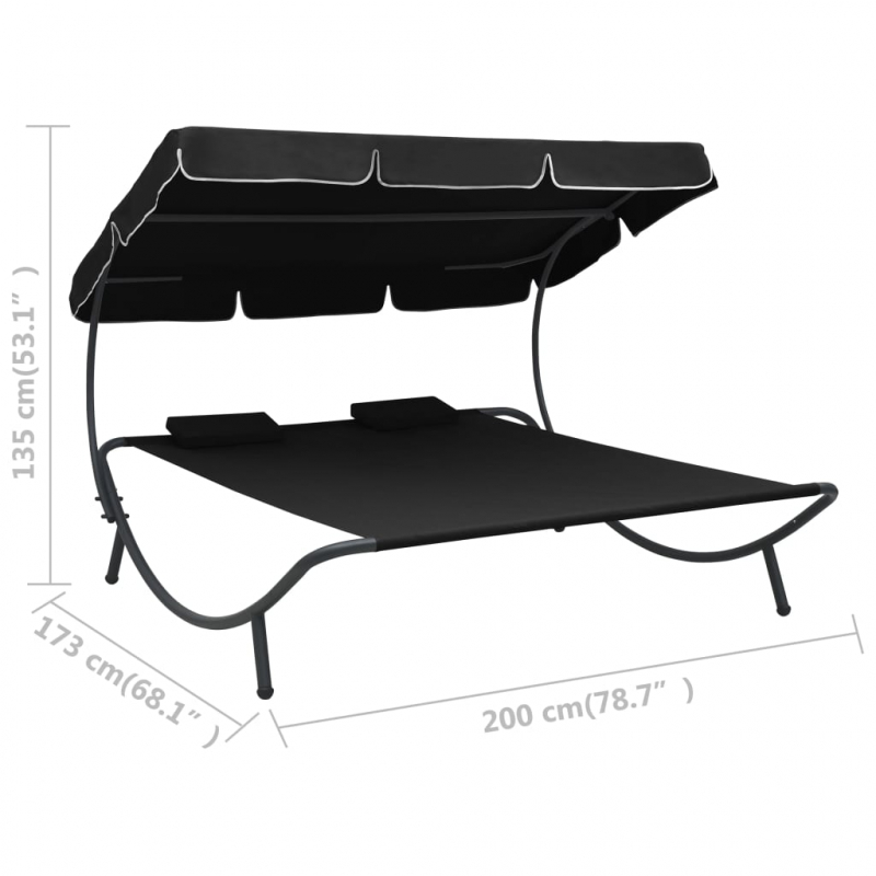 Sonnenliege mit Sonnendach und Kissen Schwarz