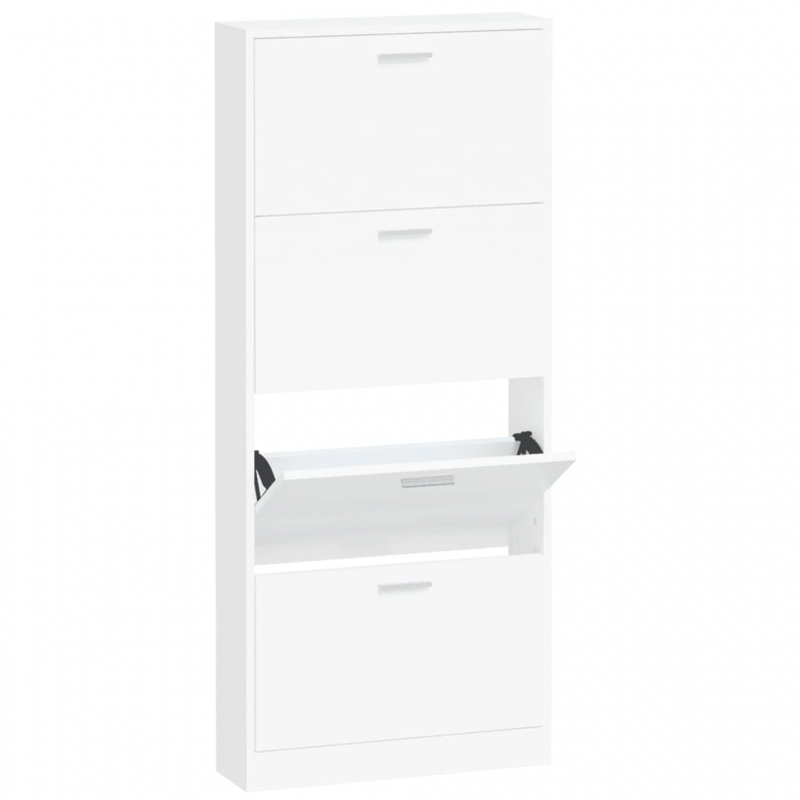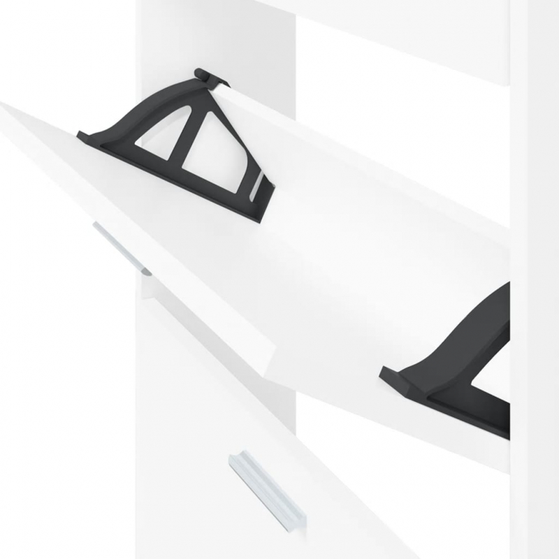 Dieser Schuhschrank, in einem modernen und stilvollen Design, ist ein hervorragendes Möbelstück für die ordentliche und übersichtliche Aufbewahrung deiner Schuhe. Der Schuhe-Organizer eignet sich für den Eingangsbereich, Flur, Wohnzimmer und für jeden anderen Ort, an dem du es gerne haben möchtest. Langlebiges Material: Holzwerkstoff ist ein Material von außergewöhnlicher Qualität mit glatter Oberfläche, das sich durch Festigkeit, Stabilität und Feuchtigkeitsbeständigkeit auszeichnet.Reichlich Stauraum: Dieser Schuhkipper verfügt über 4 Klappen und bietet ausreichend Platz, um deine Schuhe griffbereit und gut organisiert zu halten.Kippbares Design: Dank der Kippfächer bietet dir dieser leicht zu öffnende und schließende Schuhschrank einfachen Zugriff auf deine Schuhe. Hinweis:Jedes Produkt wird mit einer Montageanleitung in der Verpackung für eine einfache Montage geliefert. Achtung:Um ein Umkippen zu verhindern, muss dieses Produkt mit der mitgelieferten Wandhalterung gesichert werden.