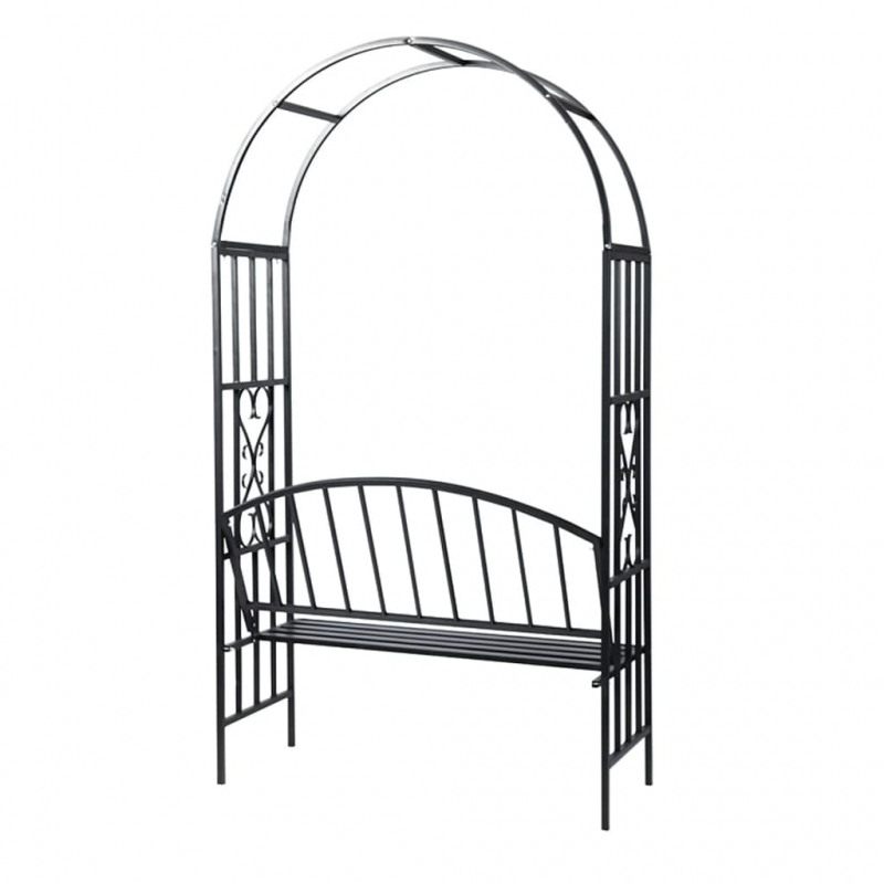 Dieser Rosenbogen mit Sitzbank ist ein echtes Schmuckstück für jeden Garten, jede Terrasse usw. und ist mit vielen schönen Details verziert. Der Bogen hat eine hochwertige und stabile Konstruktion. Er besteht aus rostfreiem Metall, das auch wetterfest ist. Dieser Rosenbogen lässt sich zudem leicht installieren. Die maximale Belastbarkeit beträgt 130 kg. Bitte beachten Sie, dass keine Erdspieße im Lieferumfang enthalten sind.