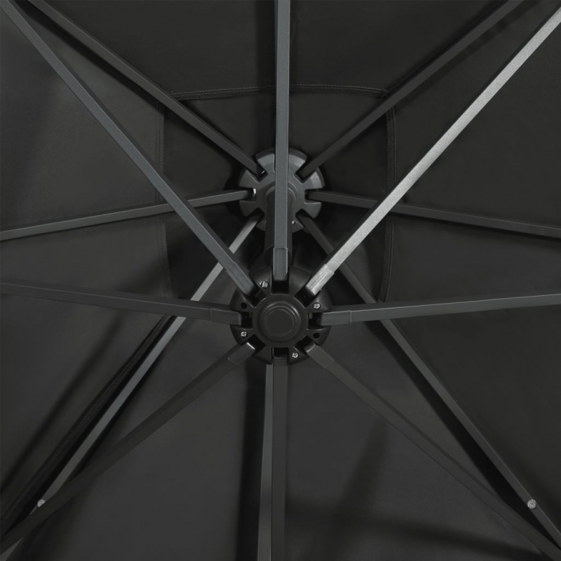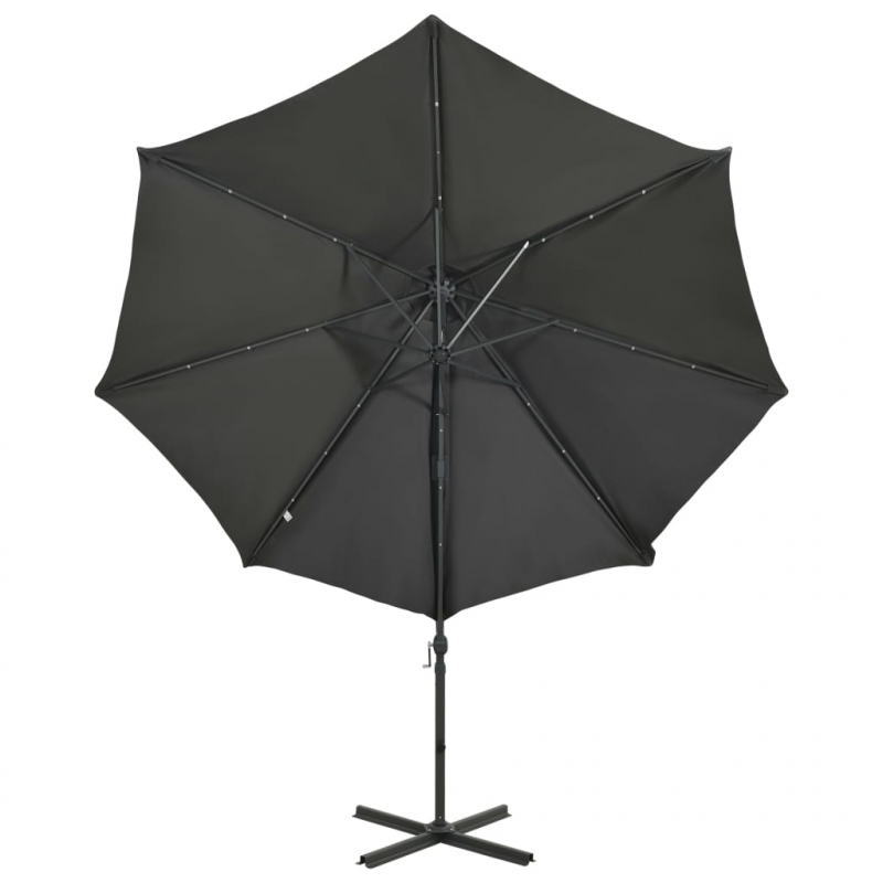 Dieser elegante Ampelschirm mit LED-Beleuchtung ist die perfekte Wahl, um etwas Schatten zu spenden und Schutz vor schädlichen UV-Strahlen zu bieten. Abends, wenn die Sonne untergeht, beleuchten die LEDs deinen Outdoor-Wohnbereich und schaffen eine angenehme Atmosphäre. Der Sonnenschirm aus UV-beständigem und lichtechtem Polyester bietet dir optimalen Schutz vor der Sonne und ist leicht zu reinigen. Ein stabiler Kreuzfuß sorgt für zusätzliche Stabilität. Das exklusive Design des Gartenschirms ermöglicht es dir, ihn um 360 Grad zu neigen und zu drehen, um die Sonne aus jedem Winkel abzuschirmen. Der starke Aluminiummast und die 8 Rippen machen den Sonnenschirm sehr robust und langlebig. Dieser Gartenschirm lässt sich dank des Kurbelmechanismus leicht öffnen und schließen. Außerdem verfügt dieser Terrassenschirm über 24 LEDs, die deinen Outdoor-Wohnbereich beleuchten und ein gemütliches und romantisches Ambiente schaffen. Bitte beachte: Wir empfehlen, den Schirmbezug mit einem Imprägnierspray zu behandeln, wenn er starken Regenfällen ausgesetzt ist.