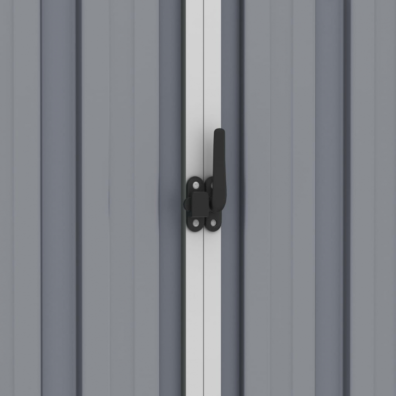 Dieser Gartenschuppen ist ideal für die Aufbewahrung einer Vielzahl von Gegenständen wie Werkzeugen, Gartenmöbeln, Gartengeräten usw. Der Schuppen bietet Schutz vor Schmutz, Staub, starkem Wind und rauem Wetter. Dieser Lagerschuppen ist mit Lüftungsschlitzen ausgestattet, die als Rollläden dienen, um den Regen fernzuhalten. Es bietet auch jederzeit Belüftung, um die Ansammlung von Feuchtigkeit und Gerüchen im Haus zu reduzieren. Dieser Gartenschuppen aus verzinktem Stahl erfordert nur minimale Wartung und ist sehr langlebig. Die Doppeltüren vorne ermöglichen einen einfachen Ein- und Ausstieg. Das schräge Dach lässt Regenwasser problemlos abfließen.