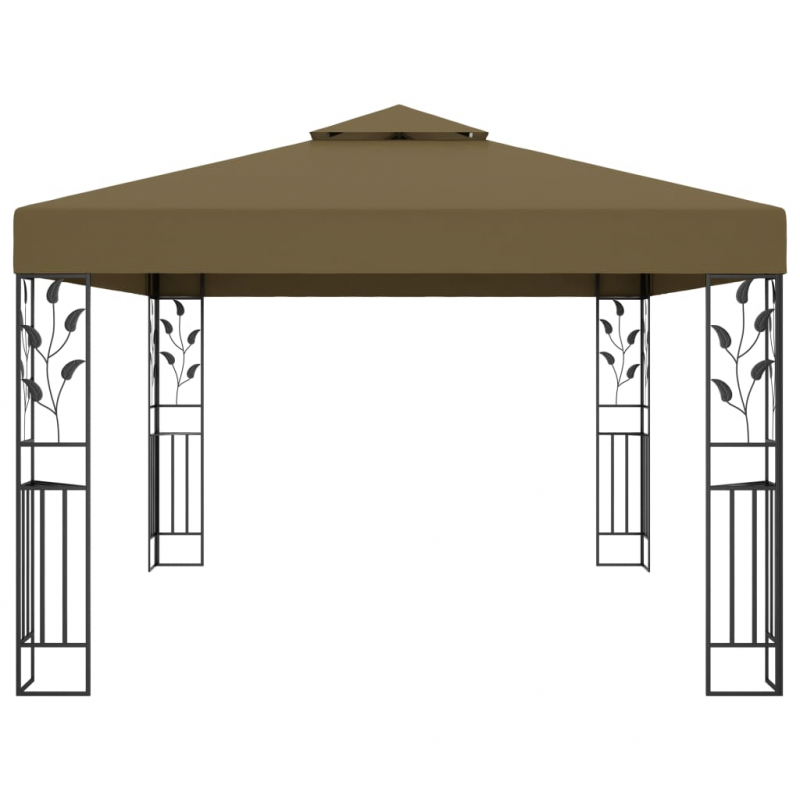 Pavillon mit Doppeldach & LED-Lichterkette 3x4 m Taupe