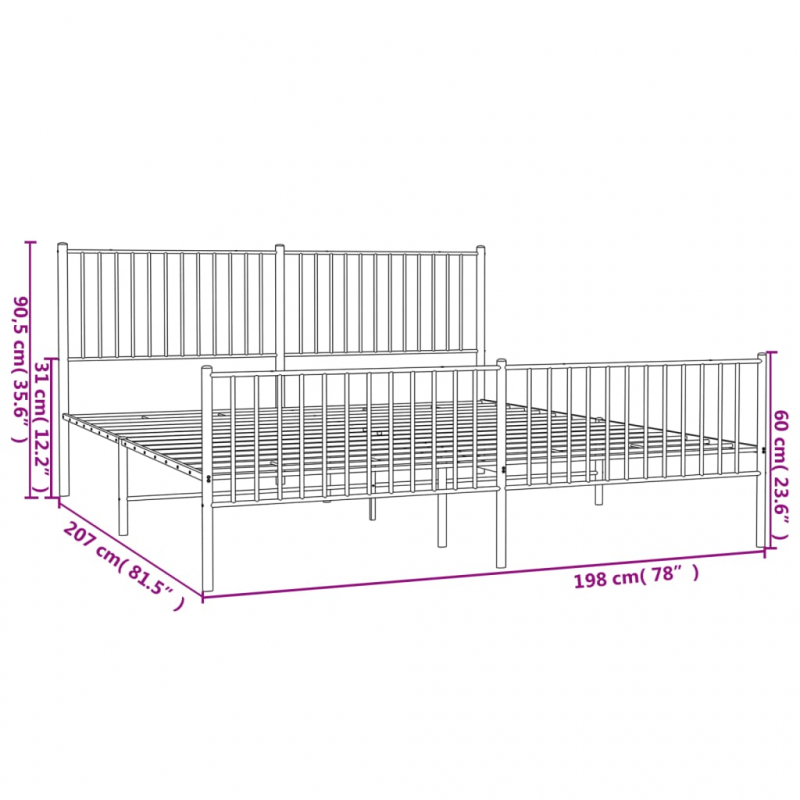 Bettgestell mit Kopf- und Fußteil Metall Weiß 193x203 cm