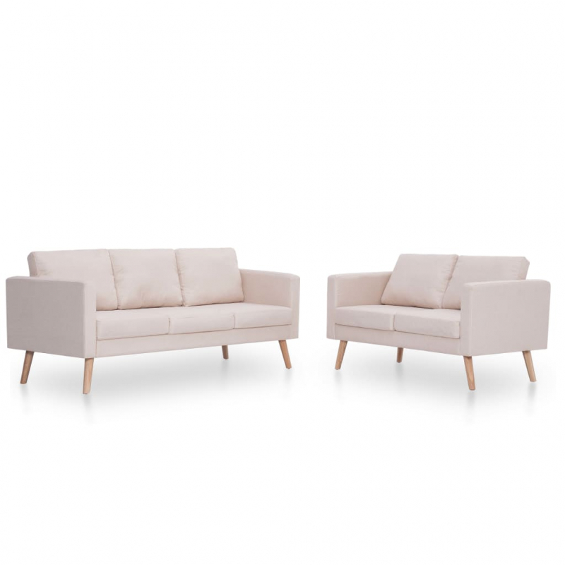 2-tlg. Sofagarnitur Stoff Cremeweiß
