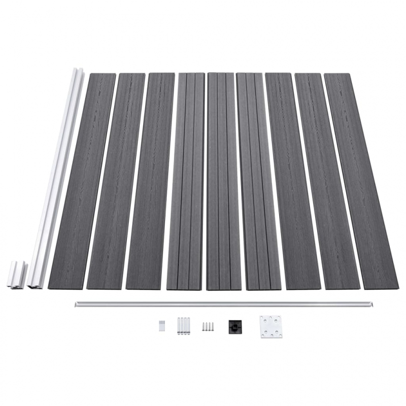 Das Zaunpaneel-Set kann als Umzäunung des Gartens oder Hofs für mehr Privatsphäre und Sicherheit verwendet werden. Dieser WPC-Zaun hat einen Holzmaserungsaufdruck auf der einen Seite und einen gleichmäßigen Aufdruck auf der anderen, sodass Sie das Design wählen können, das Ihnen am besten gefällt. Die Holz-Kunststoff-Verbundplatte bedarf keiner zusätzlichen Behandlung wie Ölen oder Lackieren. Sie ist sehr langlebig und resistent gegen Fäulnis oder Rost. Dank des Aluminium-Oberprofils können die Zaunbretter fest miteinander verbunden werden, was ihre Robustheit und Schlagfestigkeit erhöht. Die im Baukastensystem konzipierten Zaunbretter sind einfach zu montieren und ermöglichen es Ihnen, den Zaun frei zu erweitern. Die Pfosten verfügen über drei Schlitze, mit denen Sie den Anschlag auf verschiedene Weise montieren können, z.B. in gerader Linie (180 Grad), rechtem Winkel (90 Grad) oder "T"-Form. Die multifunktionalen Stahlfüße können auf zwei Arten befestigt werden. Sie können sie mit den mitgelieferten Ankerschrauben auf einer Fläche verschrauben. Die zweite Möglichkeit besteht darin, sie mit dem Erdspieß (nicht inbegriffen) in einem Zementboden zu verankern. Dieses Zaunset ist einfach zu montieren. Die Lieferung umfasst 9 WPC-Platten, 1 Pfosten, 1 Stahlsockel und 1 Aluminiumstange.