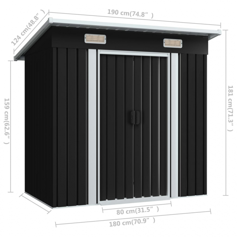Dieser Gartenschuppen ist perfekt für die Lagerung einer Vielzahl von Werkzeugen und Geräten. Dieser Gartenschuppen hat 2 Entlüftungsöffnungen an der Vorderseite, die für eine hervorragende Luftzirkulation sorgen. Die doppelten Schiebetüren an der Vorderseite erlauben ein bequemes Ein- und Austreten aus dem Häuschen. Dank der verzinkten Stahlkonstruktion mit zusätzlicher Zinkbeschichtung ist der Geräteschuppen langlebig, stabil und robust, so dass Rost und extreme Witterungsbedingungen ihm nichts anhaben können. Die fertig zugeschnittenen, vorgebohrten Teile und die mitgelieferte Aufbauanleitung garantieren eine einfache und schnelle Montage.