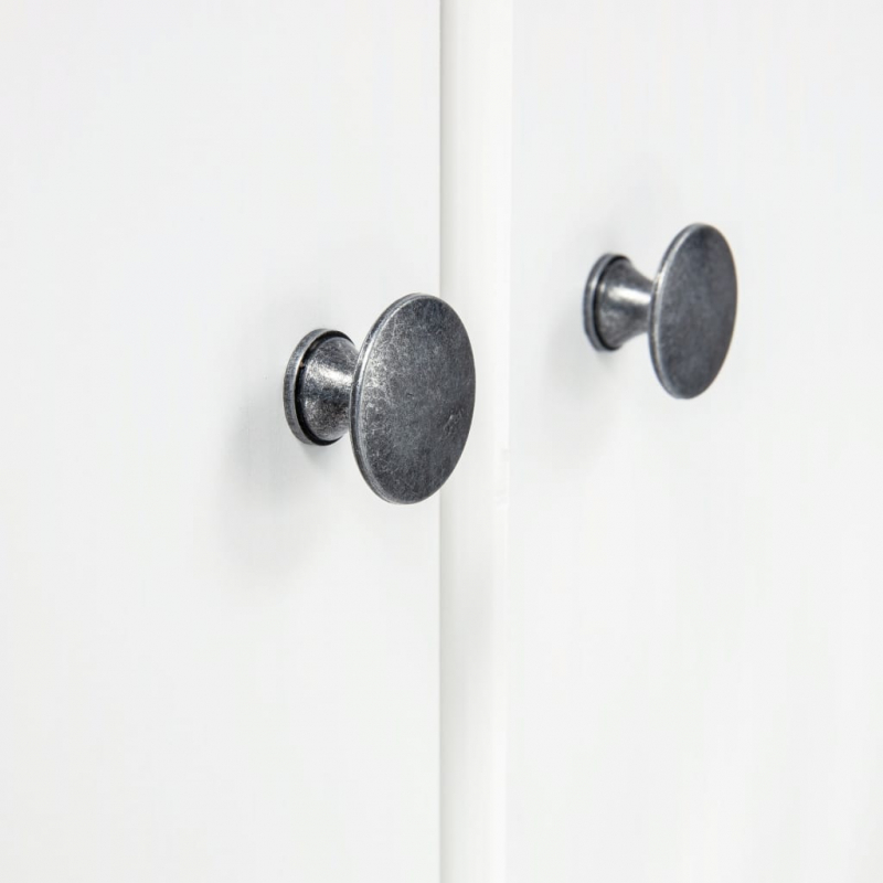 Der moderne Kleiderschrank aus Holz ist eine zeitlose Ergänzung zu deiner Inneneinrichtung. Der Kleiderschrank aus massivem Kiefernholz ist sehr robust und verfügt über 2 Schubladen sowie 5 Regalfächer und bietet ausreichend Platz, um kleinere Gegenstände gut organisiert und griffbereit aufzubewahren. Er verfügt über ein großes Fach mit einer Kleiderbügelstange, auf der Sie Trenchcoats, Kleider usw. aufhängen können. Der Schrank ist einfach zu montieren. Der Schlafzimmerschrank lässt sich auch leicht mit einem trockenen Tuch reinigen.