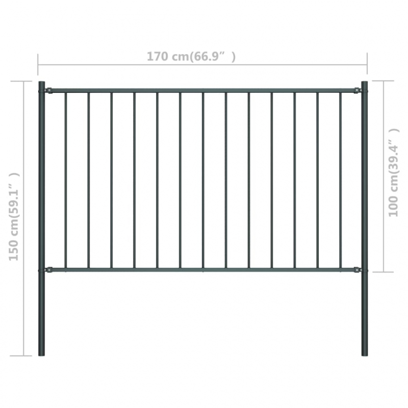 Zaunfeld mit Pfosten Pulverbeschichteter Stahl 1,7x1m Anthrazit