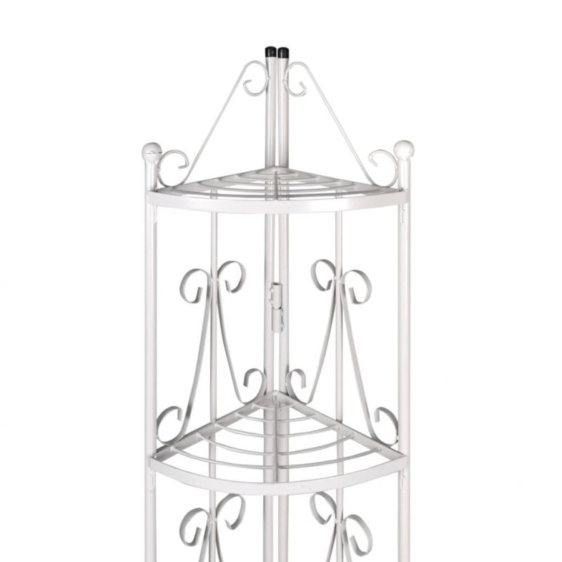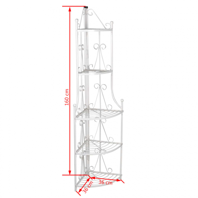 Dieses weiße Eckregal mit Rose-gemusterter Detaillierung ist perfekte für Vorführung Ihrer Pflanzen, so dass er ein echter Blickfang in jedem Garten, Veranda oder Terrasse ist. Das 5-Fächer Pflanzenregal hat eine Höhe von 160 cm und konnte perfekt gegen jede Wand-Ecke platziert werden. Der Rahmen besteht aus hochwertige Edelstahl mit Pulverbeschichtung, der rostbeständig ist, all dies garantiert Ihnen einen jahrelangen Gebrauch.