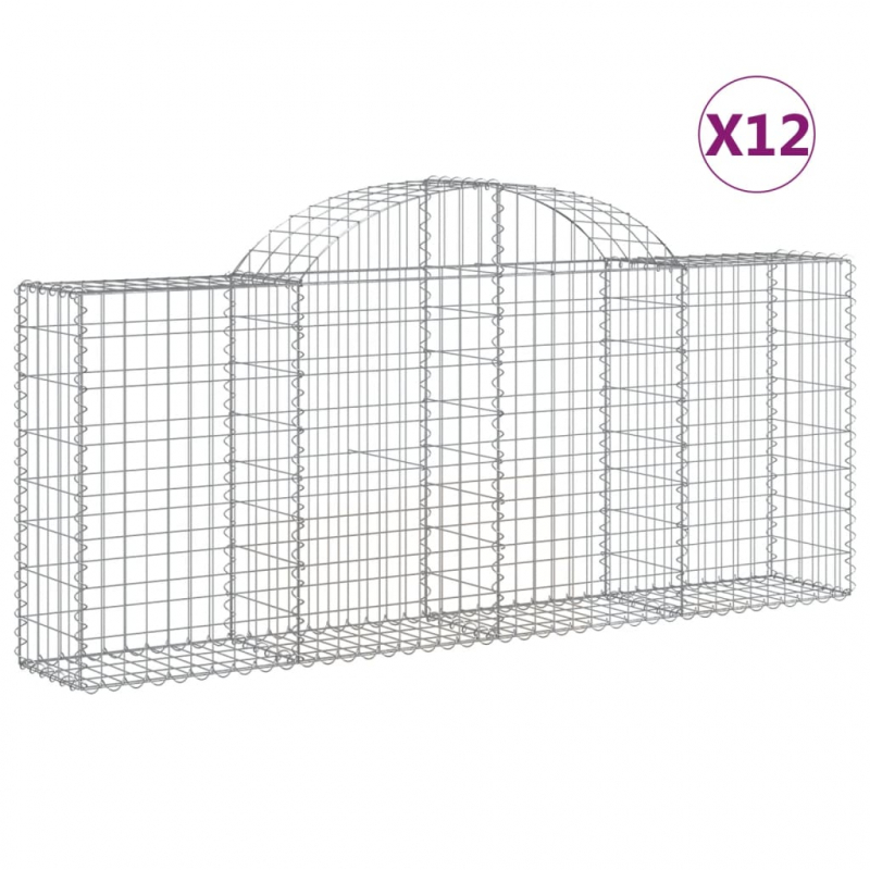 Gabionen mit Hochbogen 12 Stk. 200x30x80/100cm Verzinktes Eisen