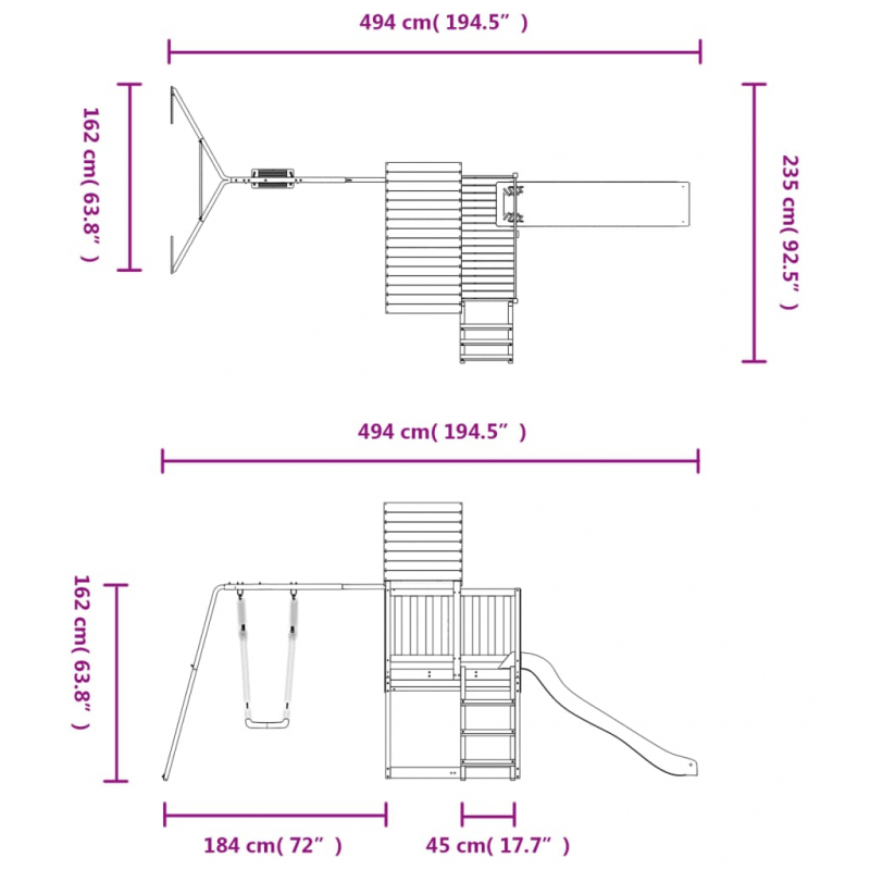 Möchtest du deinen Kindern ihren eigenen Spielplatz schenken? Dieser Spielplatz aus Holz ermöglicht fantasievolle Abenteuer im eigenen Garten! Haltbares Material: Dieses Garten-Klettergerüst ist aus kesseldruckimprägniertem Kiefernholz gefertigt. Kiefern-Massivholz ist ein schönes Naturmaterial. Kiefernholz weist eine gerade Maserung auf und die Aststellen verleihen dem Holz seine charakteristische, rustikale Optik. Die Kesseldruckimprägnierung ist ein Konservierungsverfahren, das mit Hilfe von Autoklaven durchgeführt wird. Sie erhöht die Fäulnis- und Witterungsbeständigkeit des Holzes.Robuster und stabiler Rahmen: Der Holzrahmen verleiht dem Garten-Spielturm Robustheit und Stabilität. Zudem gewährleistet das "A"-förmige Gestell die Stabilität der Kinderschaukel.Spielzentrum: Der Spielturm verfügt über eine 90 cm hohe Plattform, eine Wellenrutsche, eine Einzelschaukel sowie einen Sandkasten. So können deine Kleinen auch ihre Freunde zum Mitspielen einladen.Durchdachtes Design: Die umlaufenden Holzgeländer gewährleisten die Sicherheit der Kinder beim Spielen. Zudem spendet das Holzdach an heißen Sommertagen Schatten.Unendlicher Spaß: Dieses lustige Spielhaus aus Holz bietet deinen Kindern und ihren Freunde die perfekte Möglichkeit, Spaß zu haben, nach Herzenslust zu spielen und tolle Erinnerungen fürs Leben sammeln! Achtung:Nur für den HausgebrauchFür den Außenbereich Nicht geeignet für Kinder unter 3 Jahren Empfohlenes Benutzeralter: 3-8 Jahre Hinweis:Das Produkt muss zur Verringerung der Kippgefahr verankert werden; Anker sind nicht im Lieferumfang enthalten. Gut zu wissen:Um die Montage so einfach wie möglich zu machen, wird jedes Produkt mit einer Anleitung geliefert.