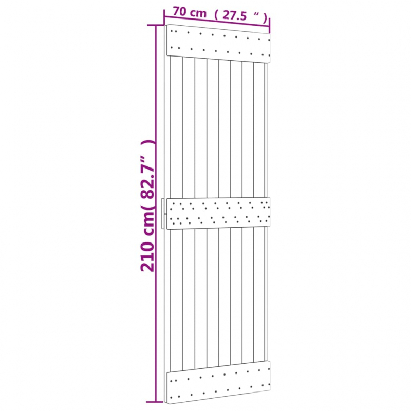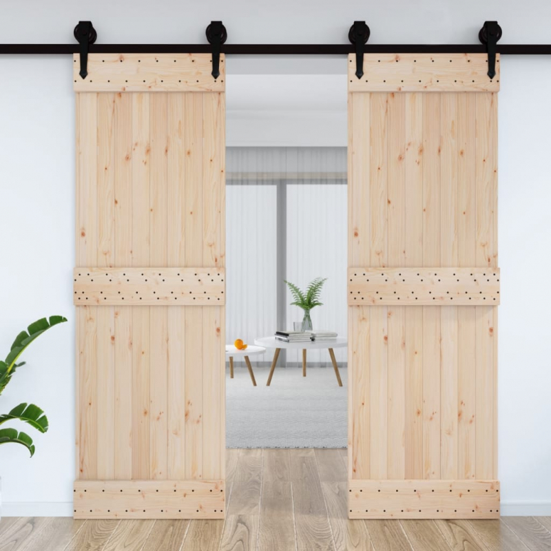 Diese Tür aus massivem Kiefernholz verschönert dein Zuhause und macht es sicherer. Massives Kiefernholz: Die Innentür ist aus massivem Kiefernholz gefertigt. Massives Kiefernholz ist ein wunderschönes Naturmaterial. Kiefernholz weist eine gerade Maserung auf und die Aststellen verleihen dem Material seine charakteristische, rustikale Optik.Platzsparendes Design: Die Schiebetür spart Platz und lässt jeden Raum geräumiger wirken. Sie ist die erste Wahl für eine schlichte und stimmungsvolle Inneneinrichtung im modernen Design. Vielseitig einsetzbar: Die Scheunentür kann sowohl an Holzwänden als auch an Betonwänden angebracht werden. Sie eignet sich ideal für Schlafzimmer, Küchen, Scheunen, Garagen usw. Gut zu wissen:Um deine NARVIK Tür mit schönen Schiebetürbeschlägen zu vervollständigen, sieh dir unser SKIEN Sortiment an. Vergewissere dich vor dem Kauf, dass die Länge der Schiebetür-Laufschiene zu der Größe deiner Tür passt.