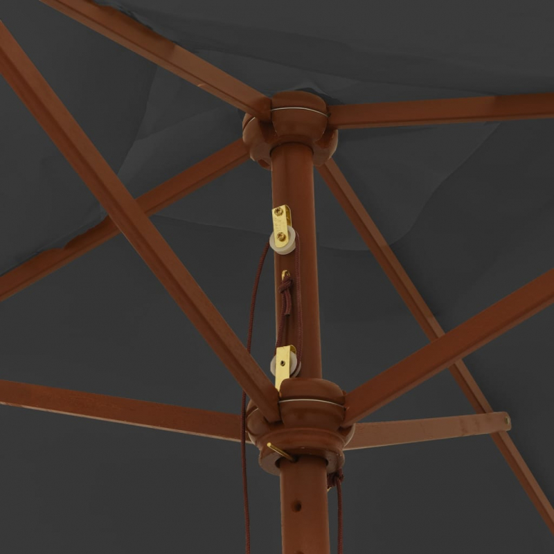 Dieser Sonnenschirm eignet sich perfekt, um Schatten zu spenden und dich vor den schädlichen UV-Strahlen der Sonne zu schützen. Langlebiges Material: Aus UV-beständigem und lichtechtem Polyester gefertigt, bietet der Sonnenschirm optimalen Schutz vor der Sonne und lässt sich einfach reinigen.Stabiles Gestell: Dank des robusten Mastes aus Hartholz und der langlebigen Rippen ist der Gartenschirm sehr stabil und langlebig.Belüftung: Das zusätzliche Stück Stoff an der Oberseite des Schirms lässt Wind und Wärme durch, was den Sonnenschirm zu einer wunderbaren Wahl für deinen Außenbereich macht.Einfache Bedienung: Der Sonnenschirm lässt sich dank des Seilzugsystems leicht öffnen und schließen. Hinweis:Dieses Produkt ist nicht zu 100 % wasserdicht. Wir empfehlen daher, es mit einem Imprägnierspray zu behandeln, um eine bessere Wasserfestigkeit zu gewährleisten.