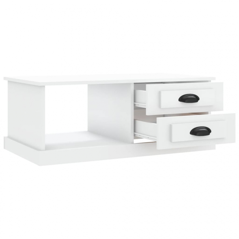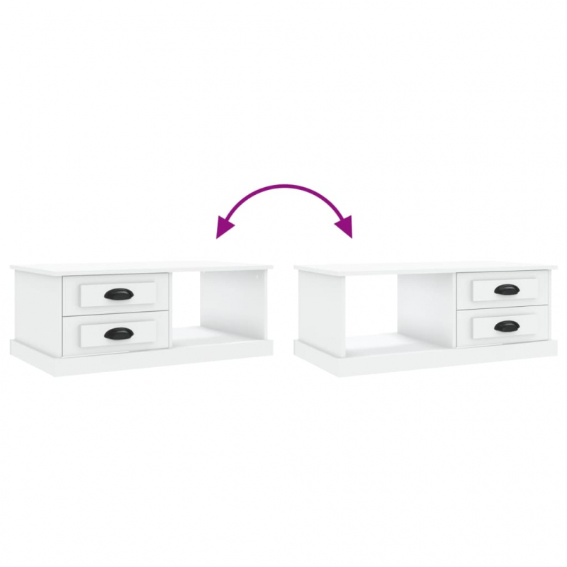 Suchst du nach einem optisch ansprechende Couchtisch für dein Wohnzimmer? Dann ist dieser praktische Couchtisch eine perfekte Wahl, um deinem Interieur eine einzigartige Note zu verleihen. Starkes Material: Holzwerkstoff ist ein Material von außergewöhnlicher Qualität mit glatter Oberfläche, das sich durch Festigkeit, Stabilität und Feuchtigkeitsbeständigkeit auszeichnet. Aus Holzwerkstoff gefertigt, lässt sich dieser Beistelltisch einfach reinigen.Reichlich Stauraum: Dieser Sofatisch bietet mit seinen 2 Schubladen und 1 Fach reichlich Stauraum, um verschiedene wichtige Sachen ordentlich und griffbereit aufzubewahren.Robuste Tischplatte: Die robuste Tischplatte bietet den perfekten Platz für Getränke, Snacks und einige Dekoartikel.Flexible Montage: Die Schubladen lassen sich flexibel links oder rechts einbauen. Gut zu wissen:Um die Montage so einfach wie möglich zu machen, wird jedes Produkt mit einer Anleitung geliefert.